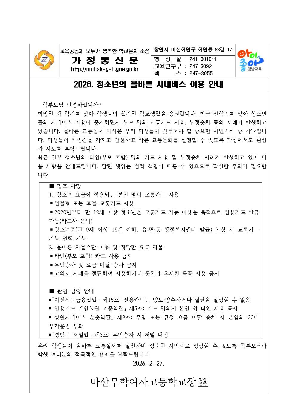 2026. 청소년의 올바른 시내버스 이용 안내 가정통신문.pdf