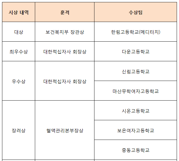 3학년 김*정, 구*현 학생을 중심으로 2,3학년 14명의 학생이 약 8개월간 헌혈 참여 홍보 캠페인 및 헌혈 문화 인식 개선을 위한 노력을 인정받은 결과이기에 그 의미가 남다르게 다가옵니다.