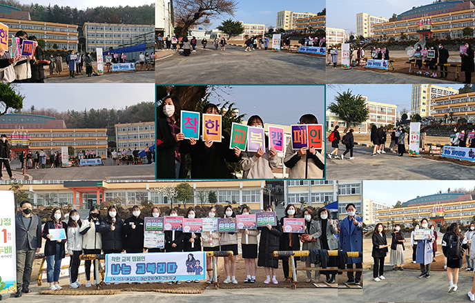 아침맞이 행사로 실시한 착한 교복 캠페인