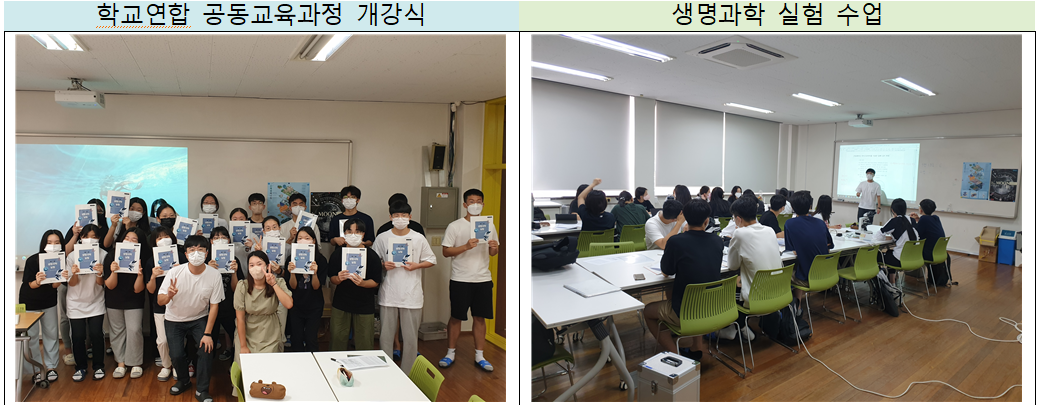 고교학점제에서는 학교 간 연계 및 협력을 통한 학교 교육력 신장과 교육공동체 구축이 요구되므로 클러스터 학교간에 협의를 통해 우리학교는 2022년 2학기 생명과학 실험 과목을 개설하였습니다. 생명과학Ⅰ을 이수한 학생들이 다양한 실험, 과제 탐구, 토론 활동을 통해 학생들의 이공계 탐구 능력을 신장하도록 도왔으며 특성 있는 교육과정 운영을 통해 교육의 다양화-특성화 도모 및 공교육의 만족도를 향상하고자 하였습니다. 본교와 타교 학생은 55%:45%의 비율로 학생들이 함께 협력하여 수업을 진행하도록 하였으며, 서로간의 정보 교류 등을 통해 미래 사회에 맞는 역량을 강화할 수 있도록 도움을 주었습니다. 내실 있는 운영을 위해 대학생 멘토교사를 초청하여 실험 수업이 안전하게 진행되고, 선배 대학생으로부터 진로를 설계 할수 있도록 계기를 마련하는 시간을 가졌습니다. 1. 과목명 : 생명과학실험 2. 강사: 본교 생물교사 김*하 3. 참여 학생: 20명 4. 장소: 본교 창의융합실