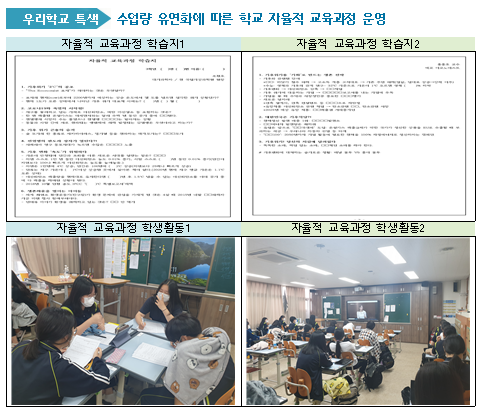 학교 교육과정의 특색 있는 프로그램으로 다양한 학습과 경험을 제공하여 자연과학적 지식과 인문학적 소양을 두루 갖춘 학생으로 성장하도록 교육적 의도를 명확히 하고자 수업량 유연화에 따른 학교 자율적 교육과정을 운영하였습니다. 3학년 학생들은 기후 변화(기후 위기)라는 주제로 영상을 시청하고 소감문을 작성한 후 학생들이 함께 모둠으로 토의하는 시간으로 운영하였습니다. 1차시는 혼돈의 코로나 시대에 날씨마저 혼란에 빠진 이 시기에 기후 변화에 대한 문제를 정의하고 인간의 삶을 위협한 사례 등을 조사하였습니다. 2~3차시는 환경문제를 해결하기 위해 새로운 삶의 방식을 모색하고 구체적인 활동 계획을 수립하였는데, 브레인스토밍을 통해 개인별, 모둠별로 함께 활동 계획을 세웠습니다. 더불어 미래에 대한 새로운 과정에 관심을 가진 학생들은 추가적으로 책을 읽고 삶을 이야기해보는 시간을 가졌습니다.