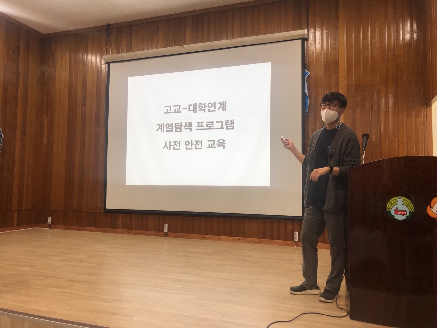2022.11.4.(금)에 예정된 <2022. 1학년 대학 연계 계열 체험 프로그램>을 위해 "안전 지도 및 사전 보고서 발표회"를 가졌습니다.