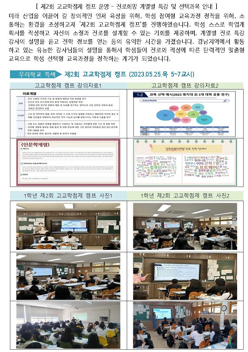 제2회 고교학점제 캠프 운영-진로희망 계열별 특강 및 선택과목 안내