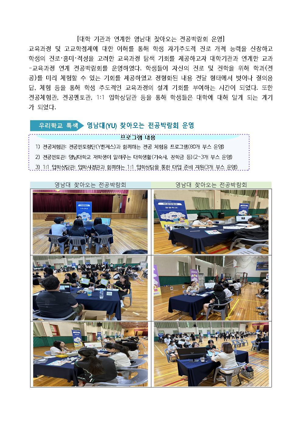 1, 2학년 대상의 영남대(YU) 찾아오는 전공박람회 운영