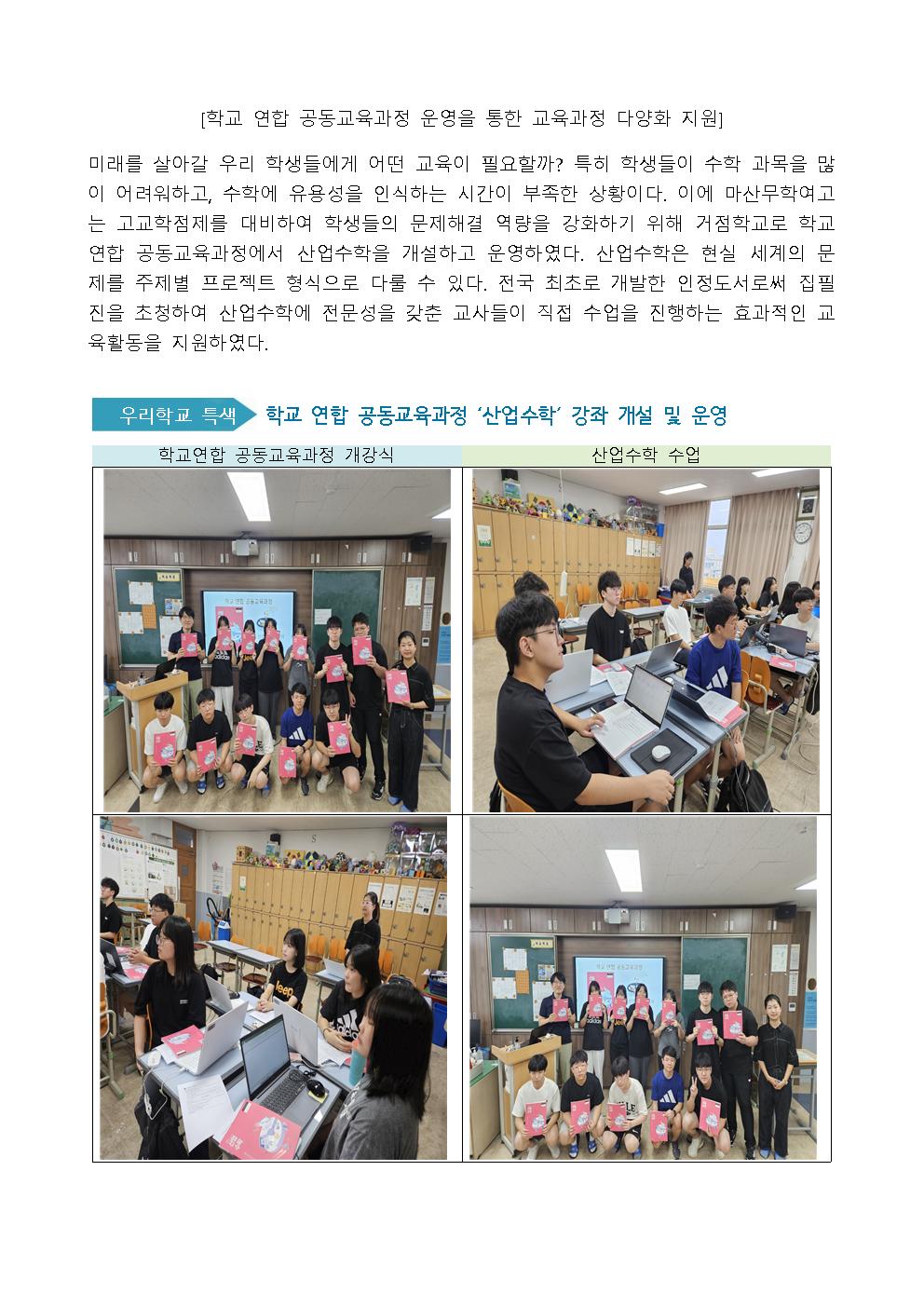 2023. 2학기 학교연합 공동교육과정-산업수학 개설 및 운영