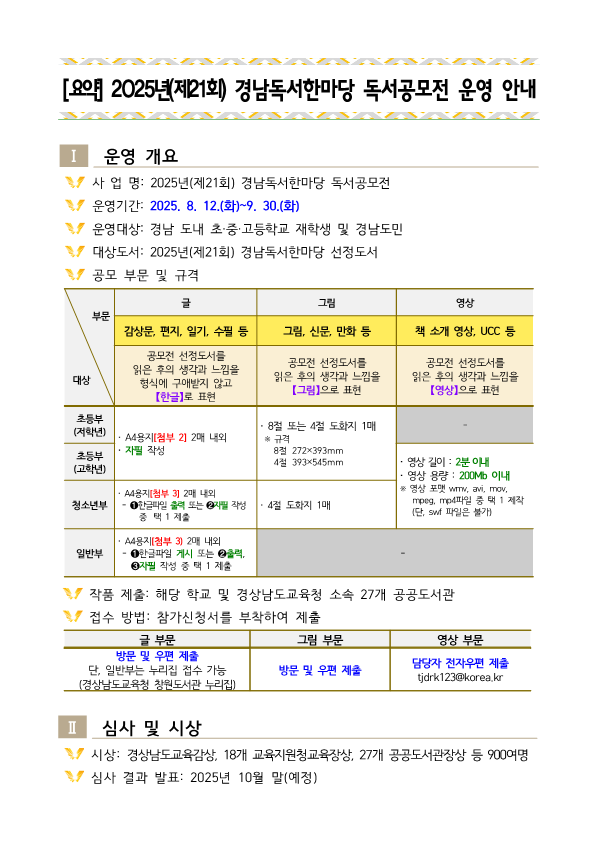 2025년(제21회) 경남독서한마당 독서공모전 운영 안내